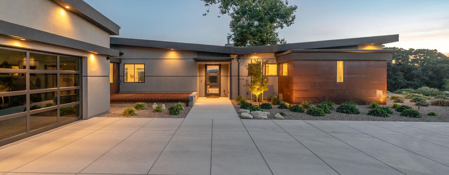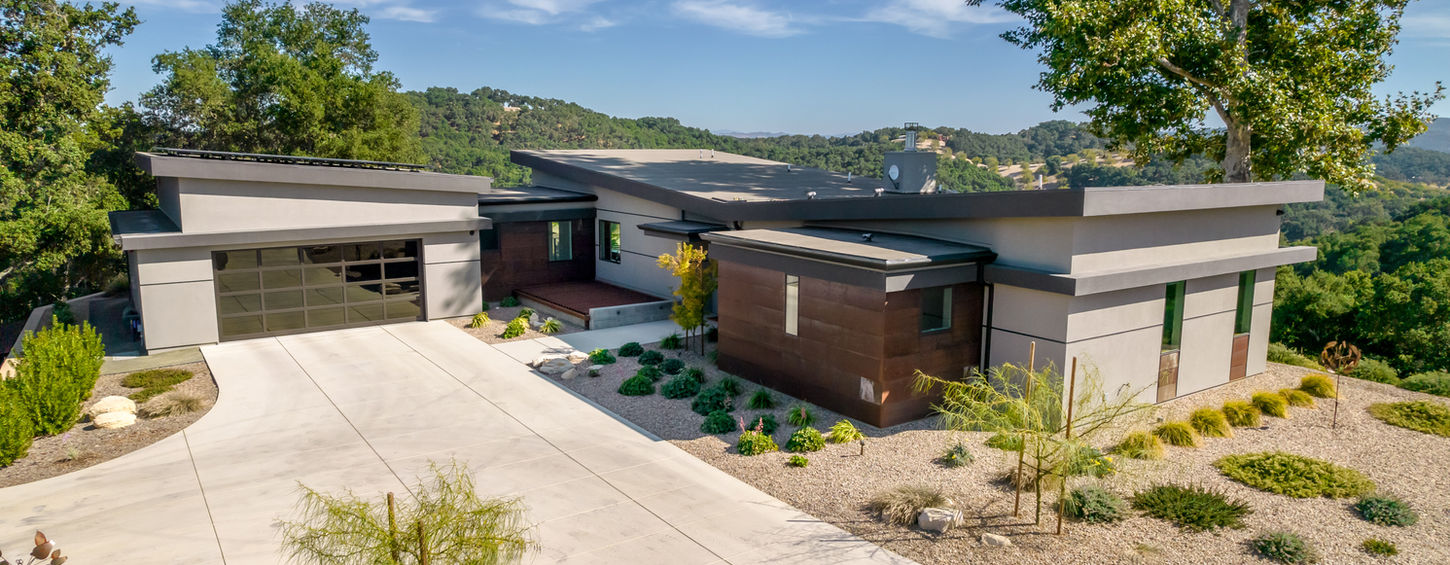 Located on a remote hilltop in western Paso Robles, this 4-bedroom, 4-1/2 bathroom home was designed to be a sustainable and fire-resistant contemporary retreat. The hillside lot provided an excellent opportunity to bury a portion of the home into the hillside and still capture the greatest views from the lot. The basement level includes a wine cellar that captures the benefits of being buried down and into the ground. This also helps with fire resilience as concrete is a major structural element of the home. All other materials around the home were designed to provide a resilient solution to the wildfire threat while being maintenance free. The roof is shaped to capture rainwater and maximize the collection of solar energy. This home is both resilient and sustainable.